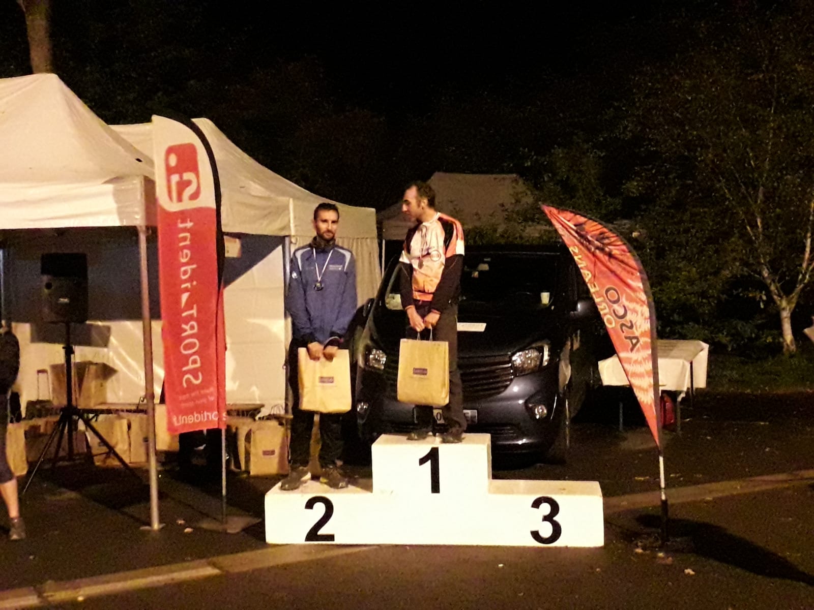 Lundi, dernier jour, enfin non, dernière CO … de nuit ! Ca c’est un bon truc pour les raideurs. Avec Cécile et Leslie nous sommes tous les 3 sur le même circuit. Cécile, après quelques légères cagades de début de course aura ensuite (un peu trop) assuré ses choix d’iti. Résultat, encore derrière Leslie qui sera la première D21 sans SIAC. Toutes les 2 dans le top 15. Pour moi drôle de course, le début n’est pas folichon, à la balise 11 j’ai déjà 3 boulettes d’une minute, les jambes sont vraiment au RDV et je sens que lorsque je suis bien dans la carte ça avance fort. Encore une erreur à la 14 et ensuite je donne le tout pour le tout autant physiquement que sur des choix d’iti assez osé. Avec ça je me dis que ça va être limite pour un podium. Désormais il faut attendre que tous les H35 arrivent pour voir le résultat. 45 minutes plus tard … prems ! Et bien le voilà le titre ! Comme quoi la CO c’est vraiment le seul sport où avec un peu de sérieux à l’entrainement tu arrives à devenir champion de France (en vétéran). Ça ne va pas entrainer des vocations chez certains champions de quartier qui liront ce CR ??