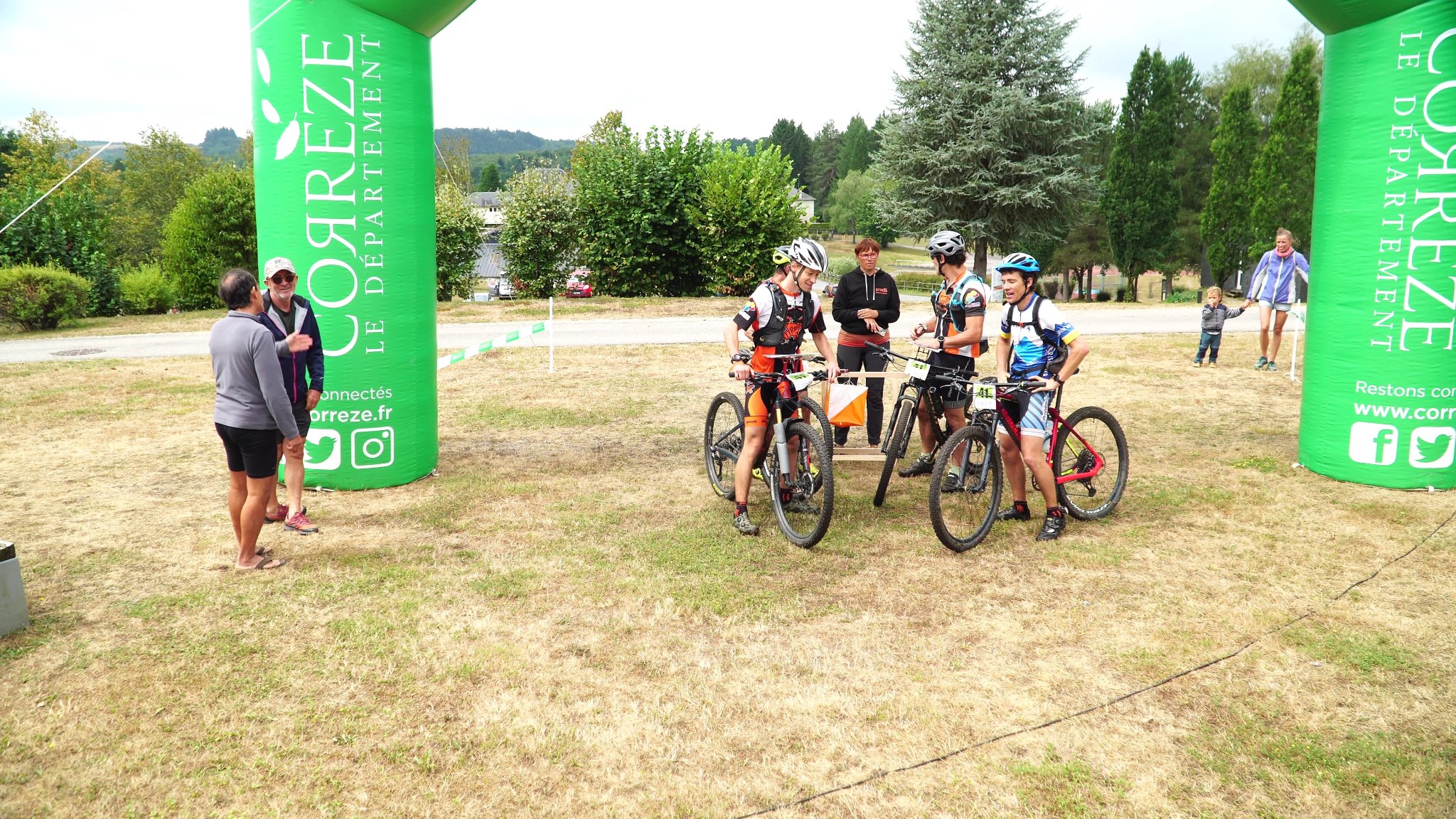 Finalement Antoine est à l’aise et c’est même lui qui imprime le rythme. On reprend du temps à Argentat sur cette section. Je glisse à Dav que je commence à être triste à l’idée que le raid se termine ! Il ne reste plus qu’une dernière section VTT. On sait qu’il va falloir s’arracher car les vttistes d’Argentat sont capables de reprendre du temps sur une telle section. L’orientation est fluide, le coup de pédale encore bon pour tout le monde, on passe la ligne avec un retard de 6 minutes sur les vainqueurs du jour. Isa, la famille pour Antoine et moi, et les copains nous attendent et encouragent à fond dans la dernière montée du raid.