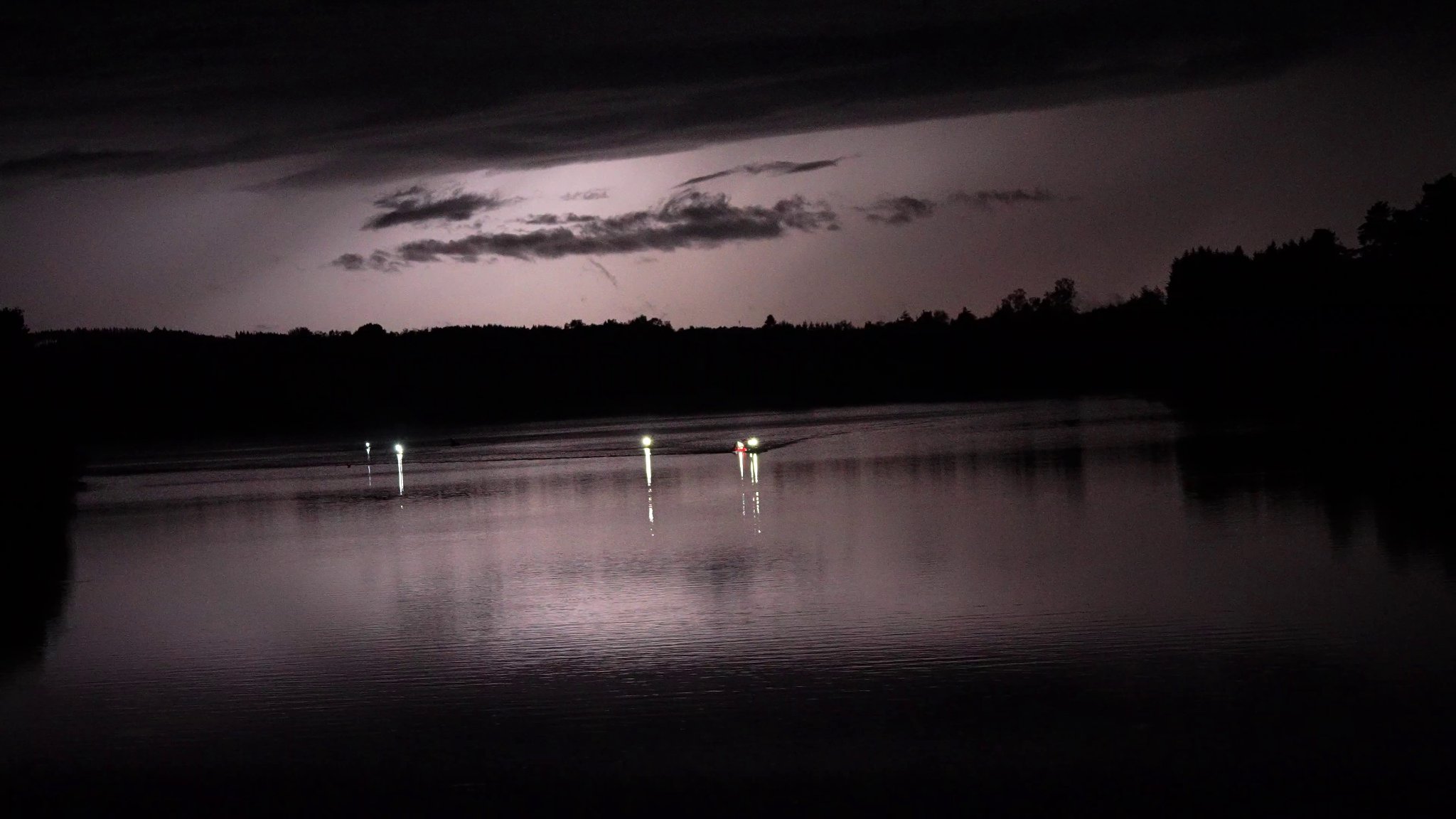 Le J2 commence dès le soir de la première journée, alors qu’on passe notre temps sur les applis météo qui nous garantissent toutes un assaisonnement copieux au petit matin voire à la mi-journée. Dès la nuit la pluie tombe, pratique quand tu dors à la belle ! Et au moment du départ à 5h, même tarif. En fait presque toute la journée va se faire sous la flotte, ça change du cagnard de la veille… Le premier packraft nocturne va même se faire sous la douce lumière des éclairs qui rendent les frontales totalement superflues, et les pagaies carbones un peu stressantes !