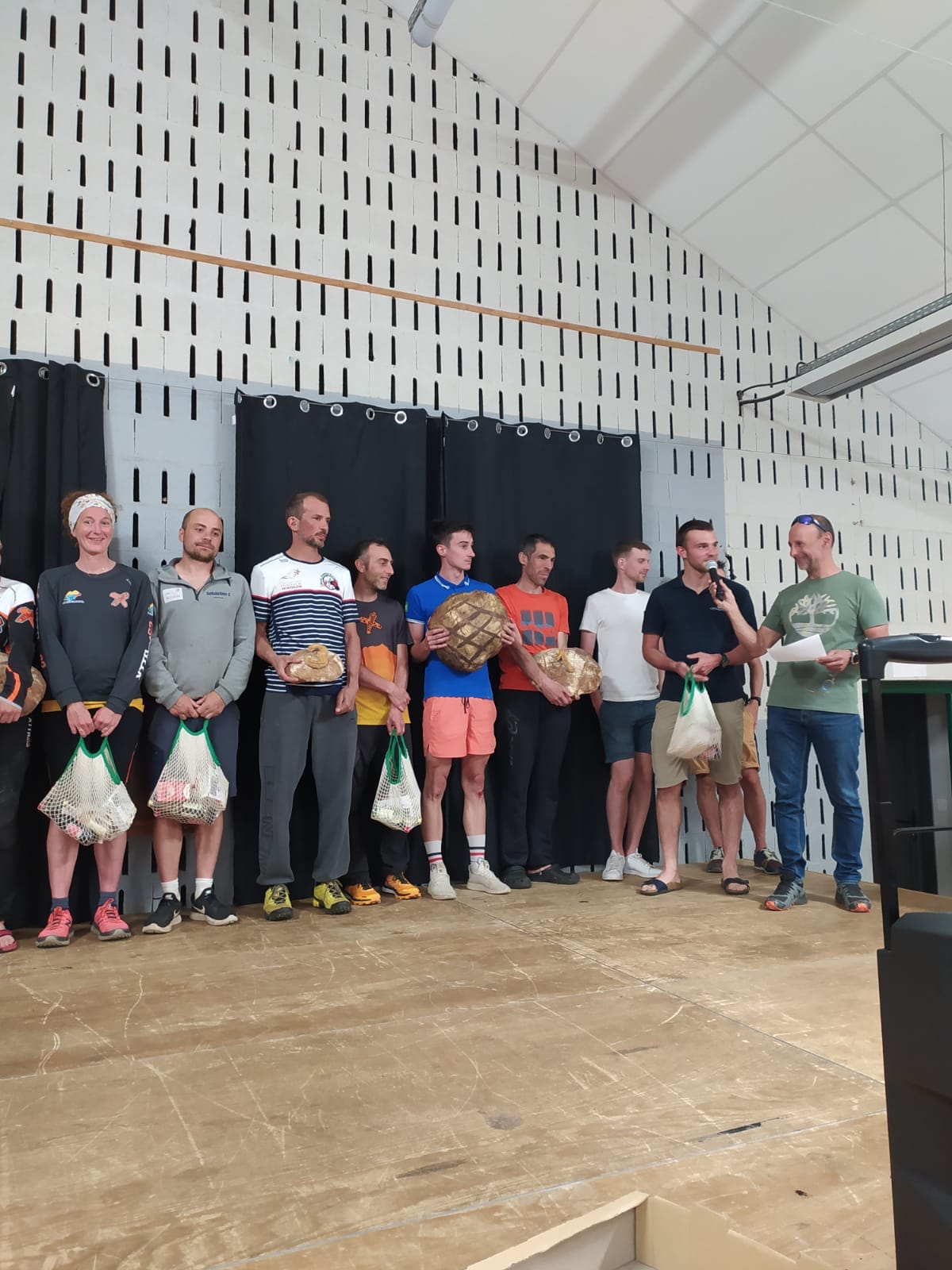 La soirée est très conviviale, la remise des prix aussi ! On remporte un panier garni avec Juliette et une grosse miche de pain ! On apprécie . La soirée se termine sous un orage digne d’un soir d’été !