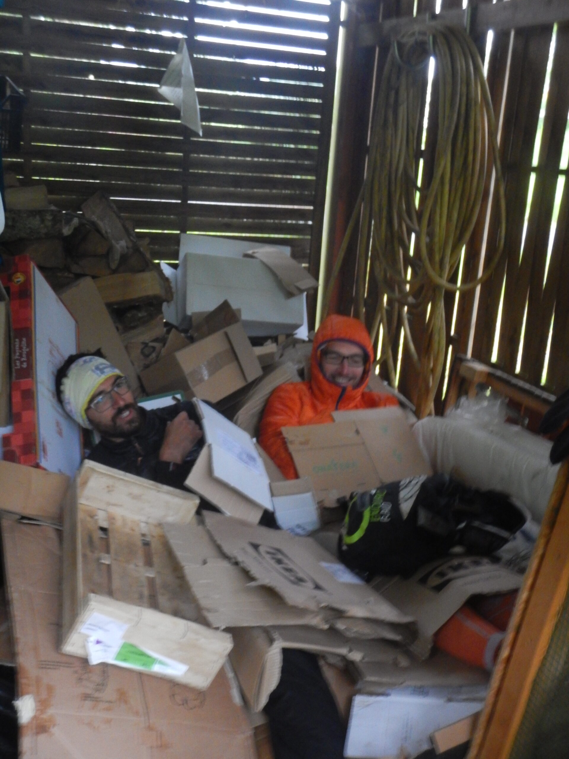 On établit notre bivouac dans un près fraichement coupé et non loin d’un tas de lisier. Stratégique : paille pour faire un matelas, fumier pour dégager du chaud. Au menu on retrouve toute la bonne gastronomie du terroir : taboulé déshydraté, maquereaux, saladière, chili con carne,… sans réchaud.