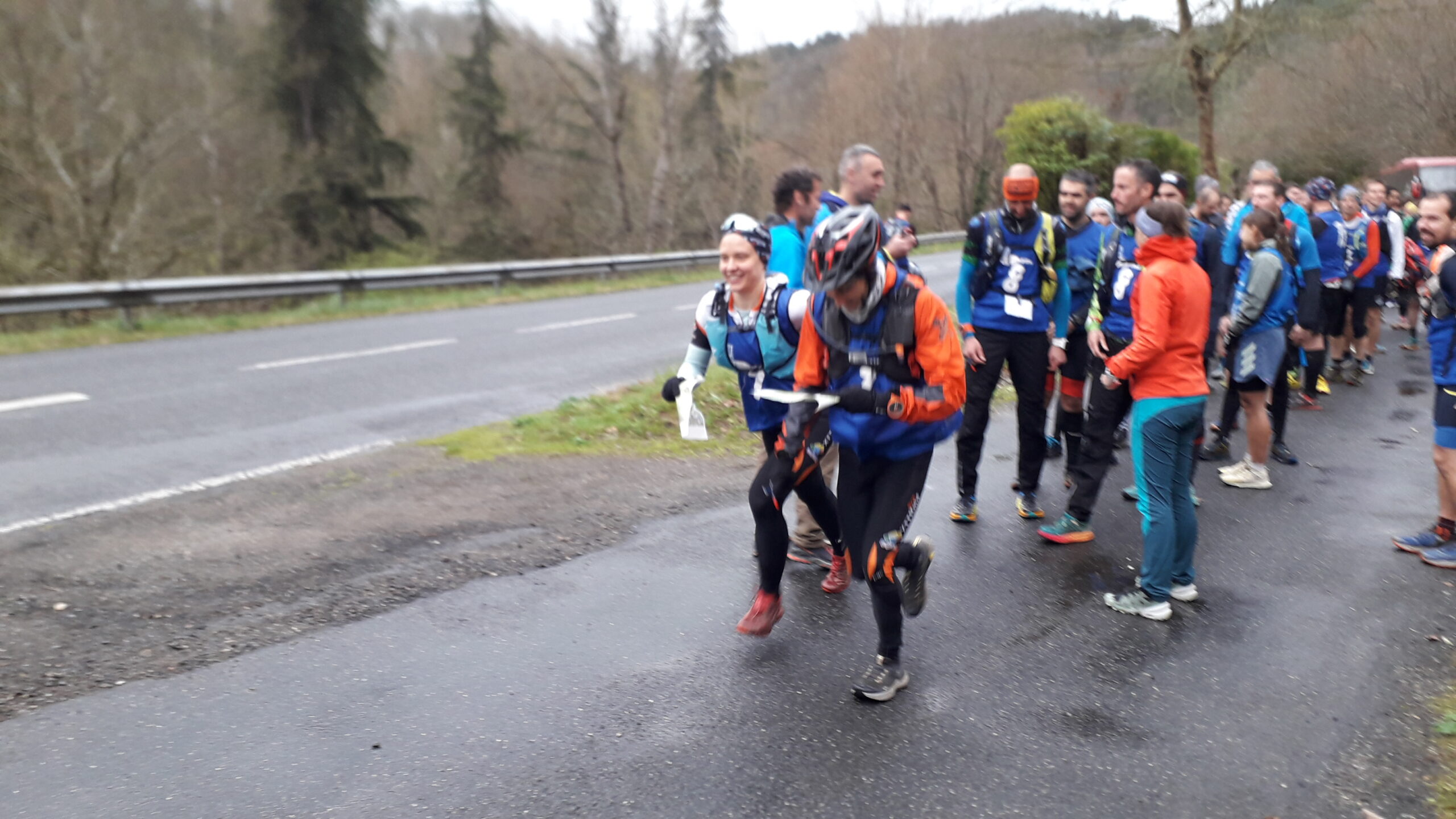 Réveil matinal, on retrouve les copains d’XTTR, briefing, puis direction au départ de la section 1 en bus, avec un départ échelonné toutes les 30′ pour chaque équipe. On a le temps de faire quelques photos, puis départ droit dans le pentu, pour les 9,5km de trail’O qui pique bien et nous mettent dans l’ambiance du raid : physique, technique, sauvage et surtout humide et spongieux, Anais sera tracté du début à la fin pour la cohésion d équipe!