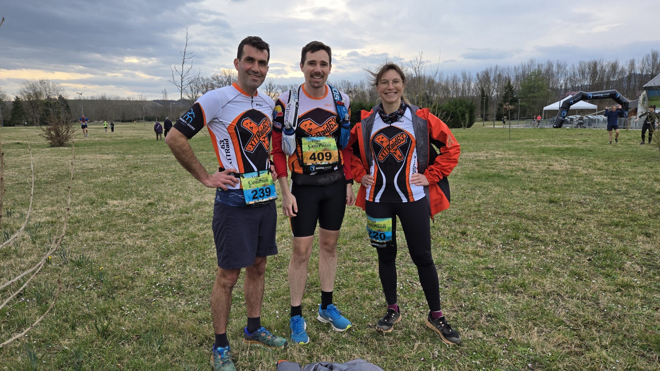 Une belle matinée débute ce dimanche 9 mars autour du plan d’eau de Cournon. Un départ groupé avec près de 500 participants pour les 2 parcours de 12 et 23 km, où 3 compères XTTR63 se retrouvent tout contents de partager ce moment.