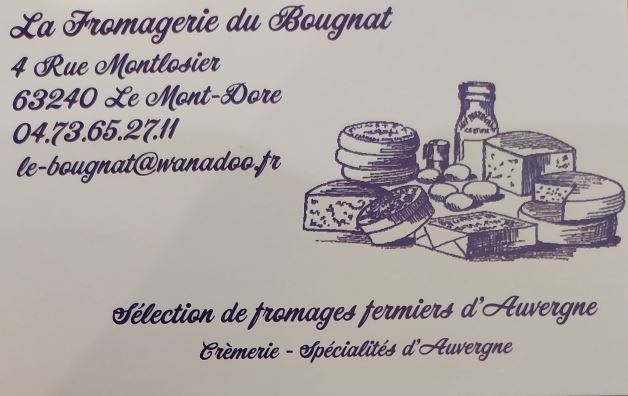 LA FROMAGERIE DU BOUGNAT4 rue Montlosier sélection de fromages auvergnats 04 73 65 27 11 |